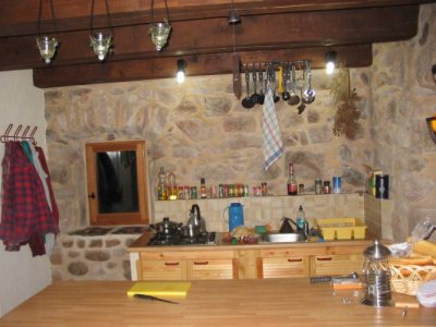 Die Energieversorgung des Hauses basiert auf einer ausreichend dimensionierten Solaranlage. Eine 220 V Steckdose ist zum Laden von Akkus oder ähnlichem vorhanden. Für die Warmwasserversorgung gibt es einen Gasdurchlauf- erhitzer.